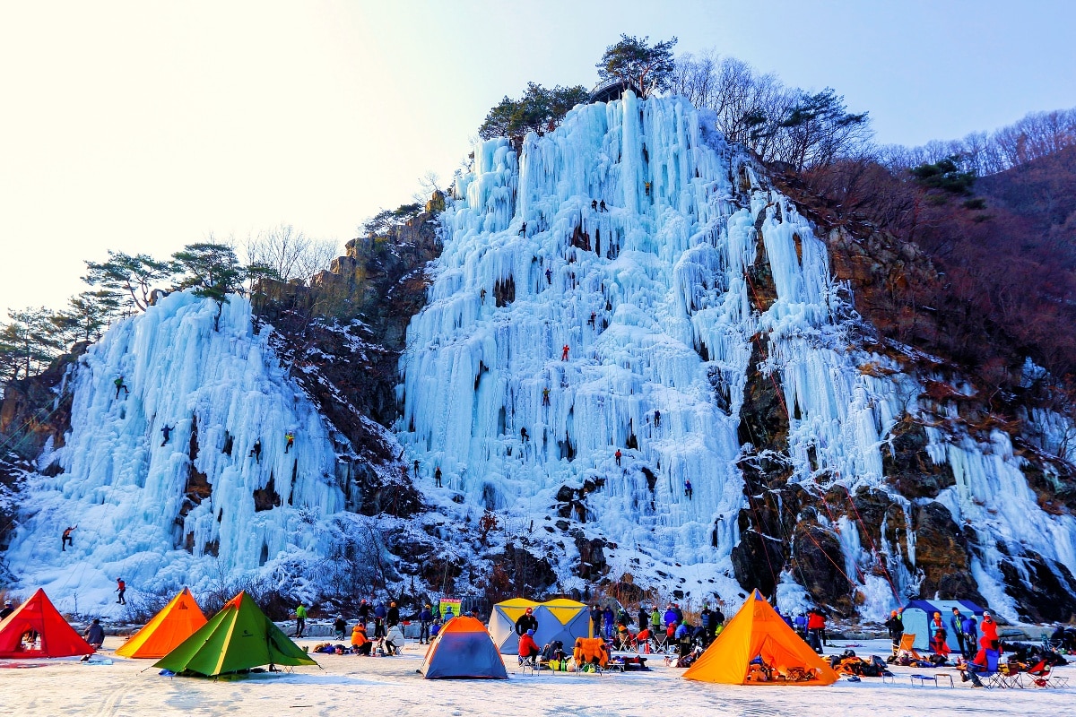 12월 겨울여행지 개장일 첫날 무료개방 아찔한 인공폭포와 빙벽, 형형색색의 텐트가 눈밭 위를 수놓는다. 동화 속 한 장면 같은 이 풍경의 ...