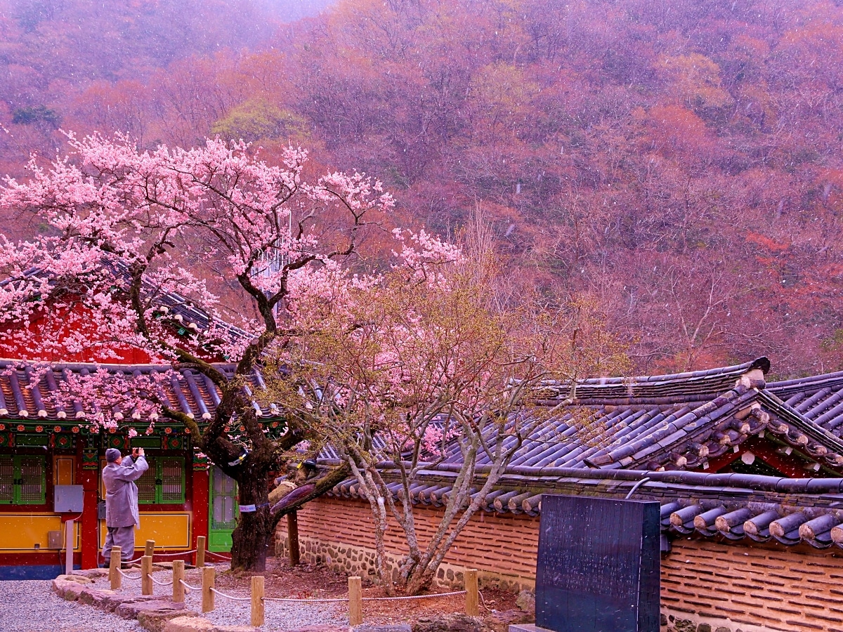 지리산 자락에서이제 막 피어난 홍매화,이번 주말이 절정 포인트! 전국적으로 꽃이 늦게 피어나면서 봄꽃 명소들의 개화 시점도 미뤄졌다. 여행을 미루고 있던 ...