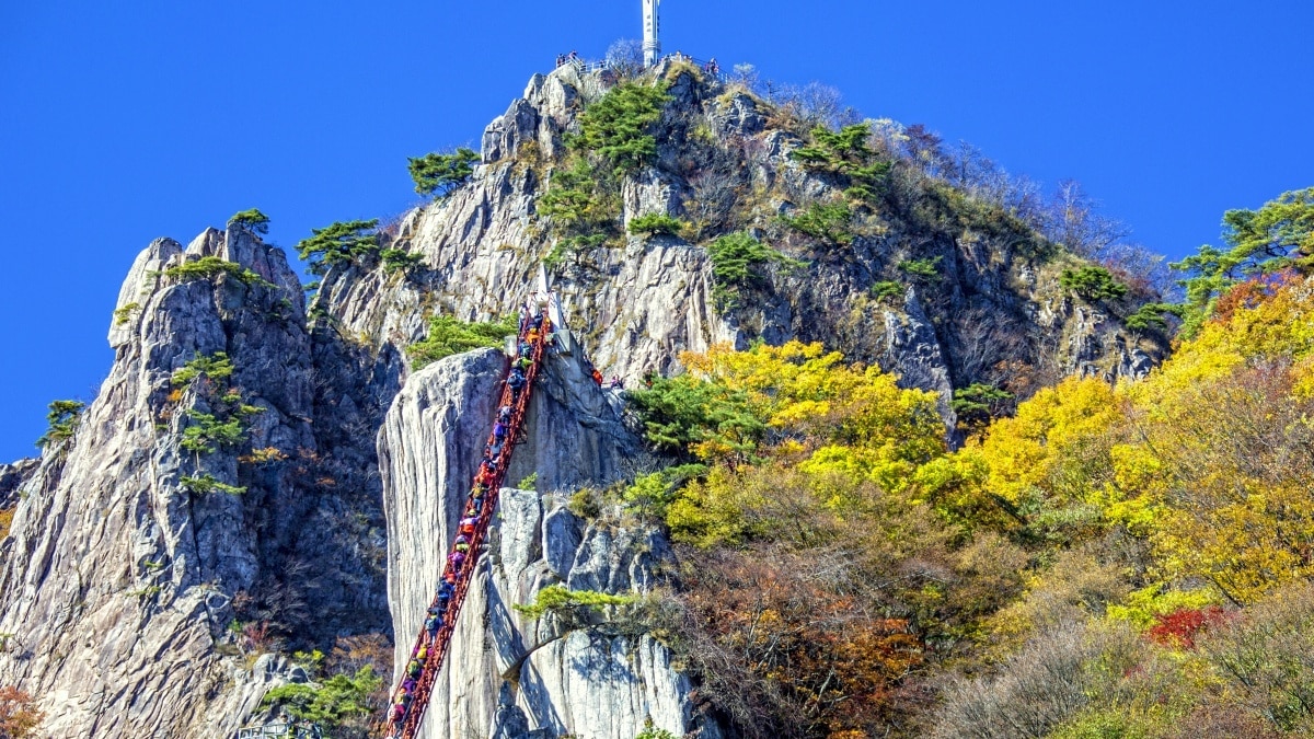 6월 추천 여행지 울퉁불퉁한 바위산과 날 선 절벽이 병풍처럼 둘러선 풍경, 그 안을 걷는 수많은 사람들의 발걸음이 한 방향을 향한다. ...