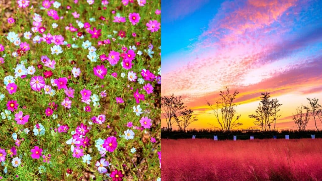 코스모스 사이를 누비는 아이들의 웃음소리, 핑크뮬리 앞에서 사진을 찍는 사람들의 발길은 그 풍경을 더욱 생생하게 만든다.