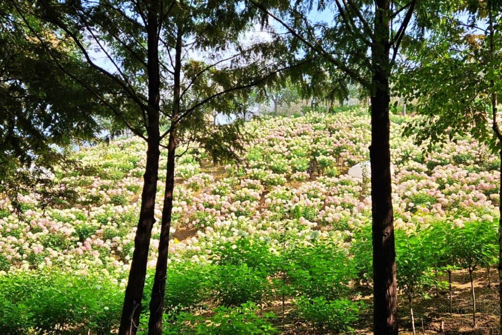 동산을 풍성하게 뒤덮는 유럽수국은 흰 색과 붉은 색 수국이 뒤섞여 아름다운 풍경을 형성하고 있어 그 자체로 포토스팟이 되어준다.