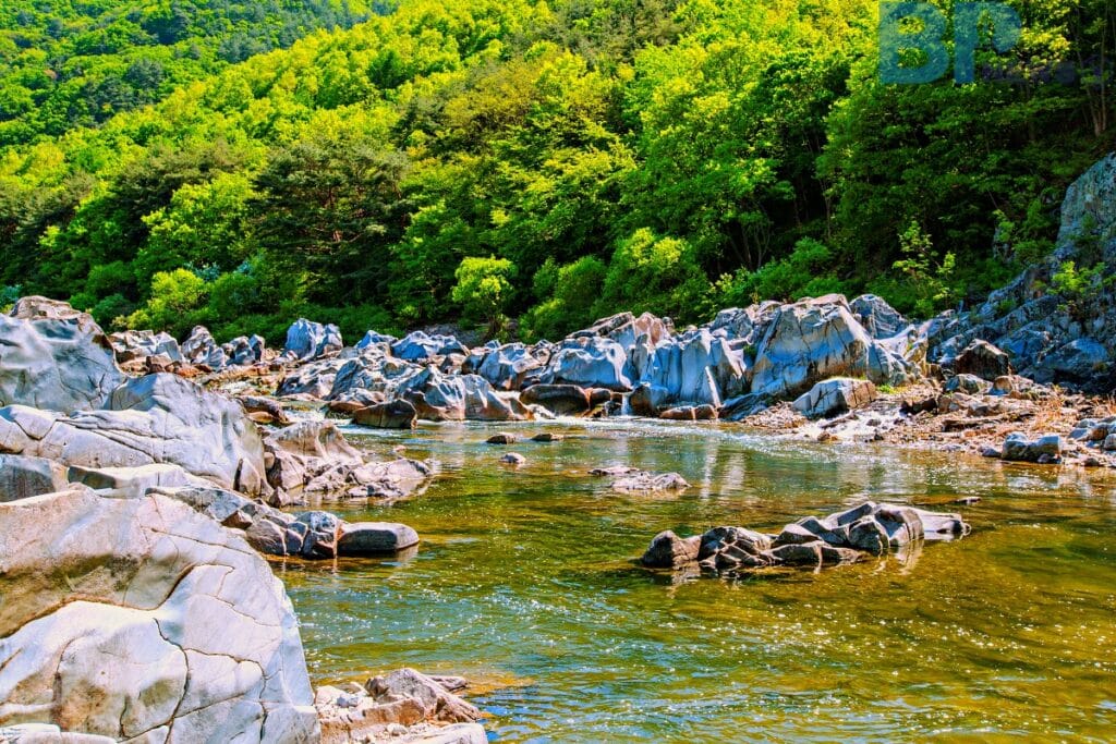 거친 물살이 수천 년을 두드려 깎아낸 바위. 그 흔적은 곡선으로, 구멍으로, 때론 반짝이는 흰 빛으로 남았다. 누구의 손도 닿지 않은 듯 원시의 숨결을 간직한 계곡은 마치 지구의 시간을 압축해 보여주는 듯하다.