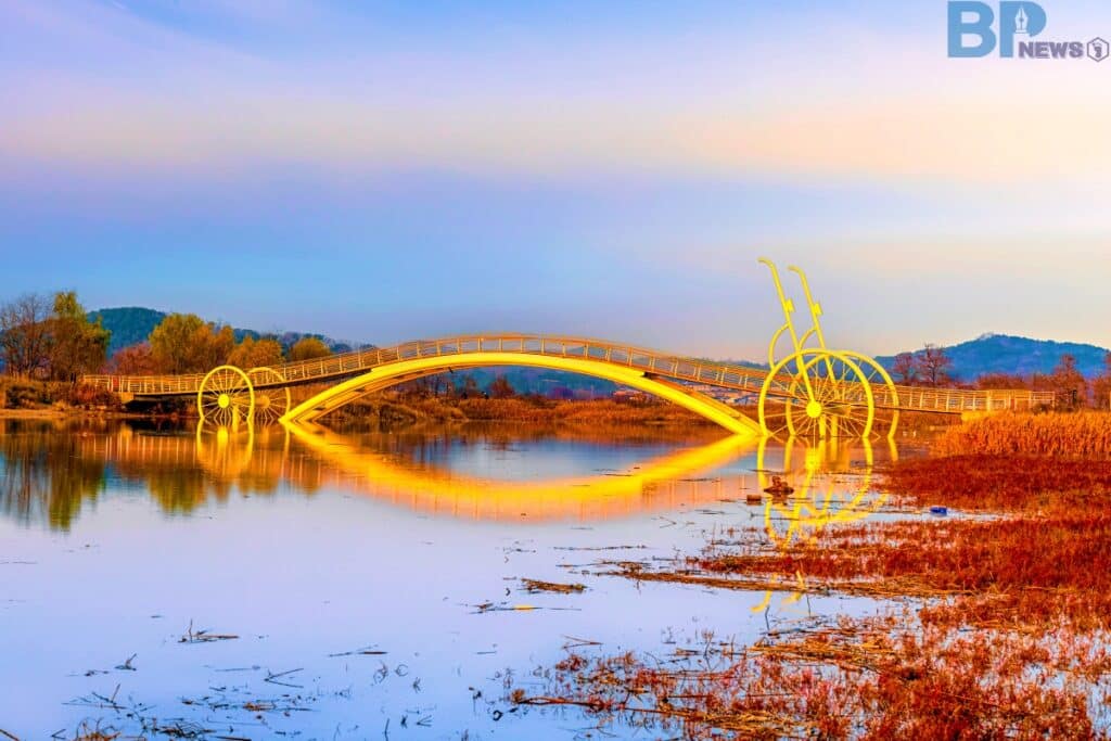 다리는 복잡한 구조물 없이 곡선의 미를 살려 설계되어 시각적으로도 안정감을 주며, 그 위를 걷는 이들에게는 마치 자연과 하나 되는 듯한 여유를 선사한다.