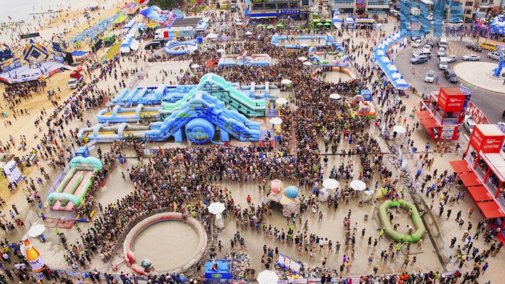 머드에는 피부 탄력에 좋은 미네랄과 노화 방지 성분이 풍부하게 들어 있어, 참가자들은 축제를 즐기면서 동시에 피부 케어도 할 수 있다.
