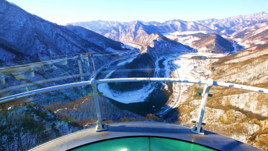 겨울철에는 유리 표면에 서리가 내려앉아 한층 아찔함을 더하며 발밑으로 펼쳐지는 동강 협곡의 풍경은 사진으로도 담기 어려운 장관이다. 입장료는 성인 기준 2천 원으로, 짧지만 강렬한 체험을 선사한다.