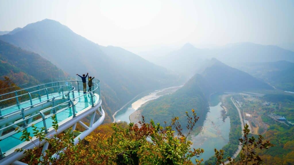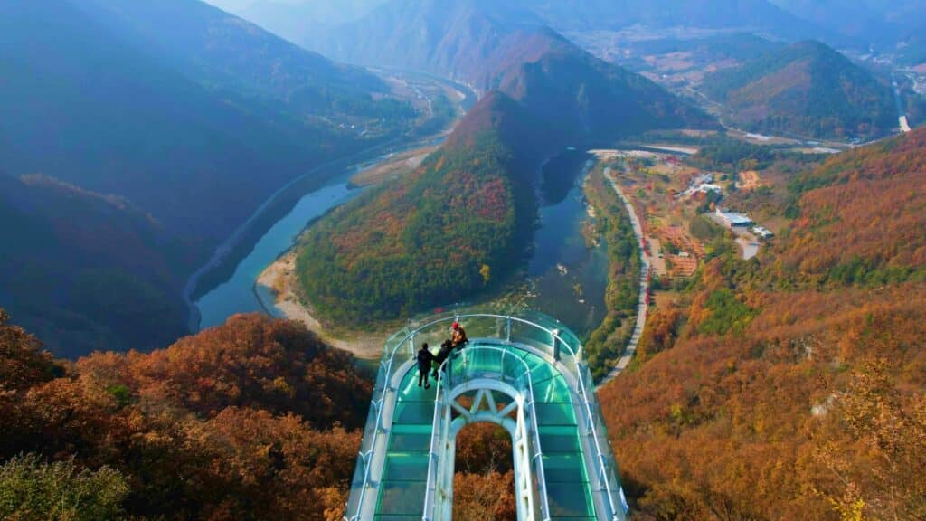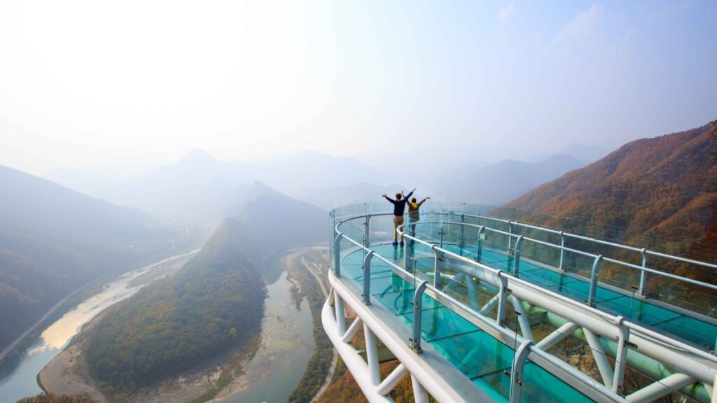 발걸음을 옮길수록 유리 아래로 보이는 깊은 계곡이 짜릿한 공포를 선사하지만, 동시에 숨 막히게 아름다운 풍경이 눈앞에 펼쳐진다.