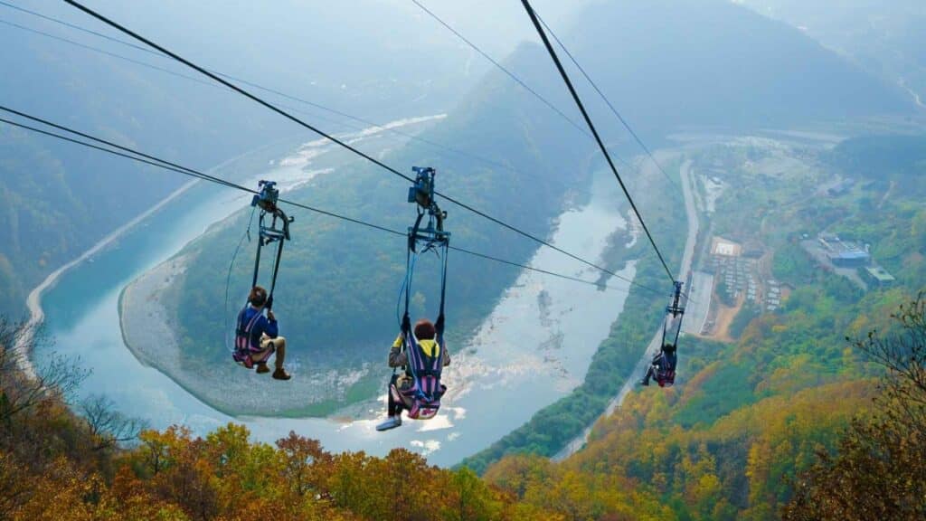 겨울에는 그 절경에 눈이 덮이며 마치 하늘과 맞닿은 듯한 착각마저 불러일으킨다. 여기에 해발 600미터가 넘는 고도에서 시속 120킬로미터로 활강하는 집와이어까지 더해지면 단순한 여행이 아니라 오감이 깨어나는 체험이 된다.
