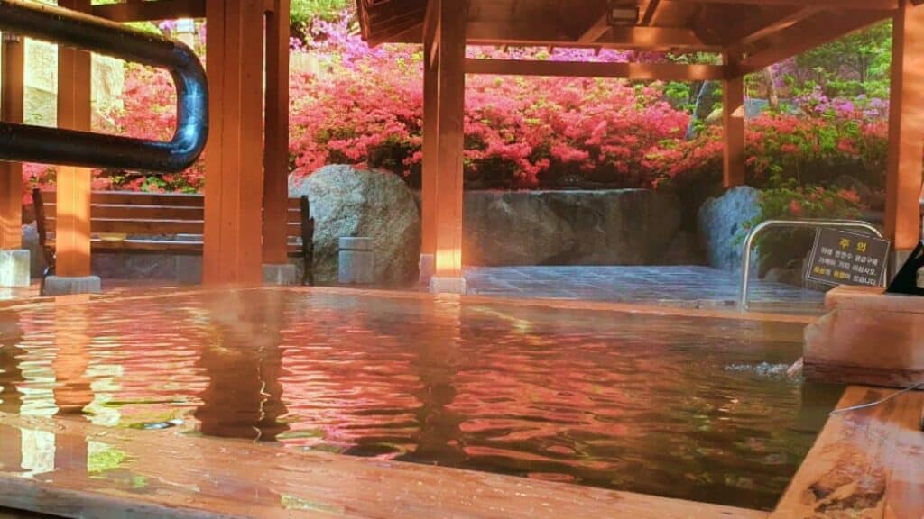 야외로 나서면 소나무 3000여 그루가 숲을 이룬 산책로가 이어지고, 전망대에 오르면 설악산 울산바위를 조망할 수 있다. 온천과 자연이 분리되지 않고 하나의 동선으로 연결된 구조다.