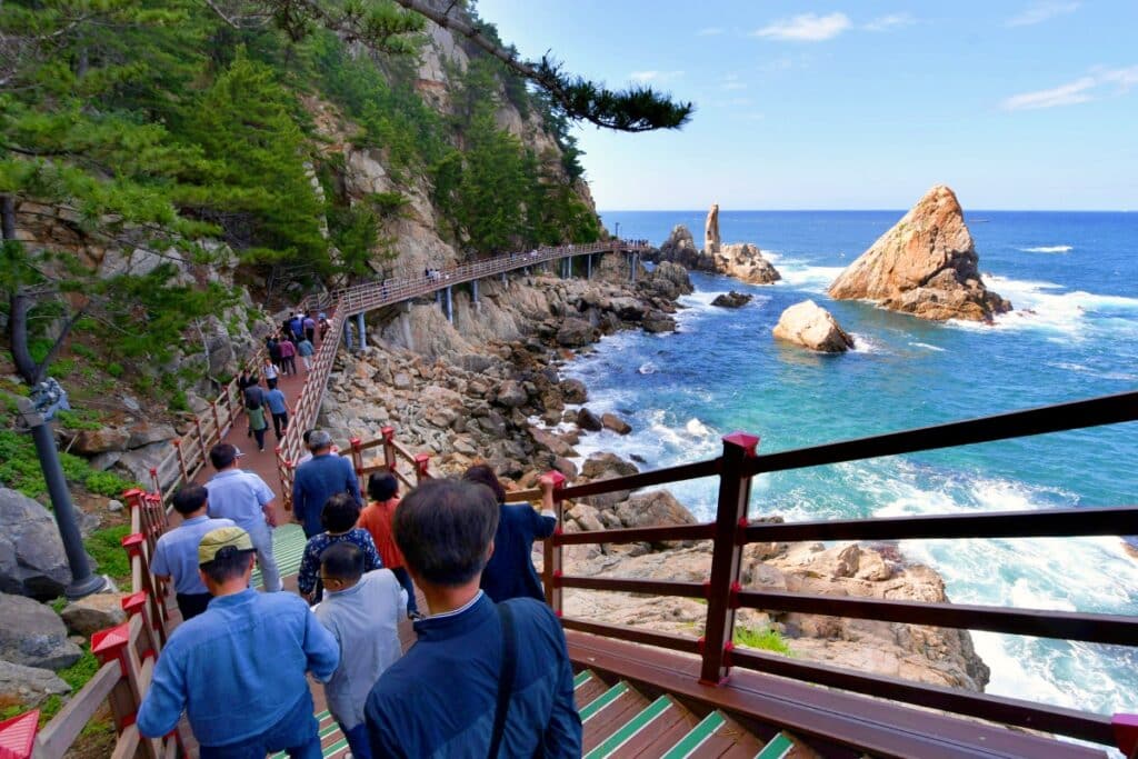 바다를 따라 걷는 길은 많지만 기암괴석과 해식동굴, 출렁다리까지 갖춘 길은 드물다. 삼척 일대의 한 해안산책로는 ‘해금강’이라는 별칭까지 얻을 만큼 독특한 해안 지형을 품고 있다.