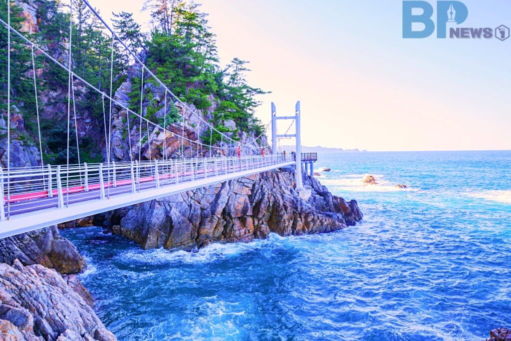 이어지는 출렁다리 구간은 바람이 불 때마다 구조물이 미세하게 흔들려 짧은 긴장감과 해방감을 동시에 제공한다. 다리 아래로는 투명한 바닷물이 내려다보이며 아찔한 높이감 속에서도 안전하게 이동할 수 있도록 설계돼 있다.