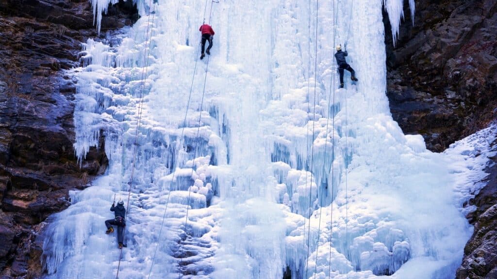 얼음 장막 아래 숨을 고른 폭포는 거대한 빙벽이 되어 등반가들을 불러 모으고, 잔잔하던 호수 위로는 철 구조물이 출렁이며 아찔한 스릴을 선사한다.