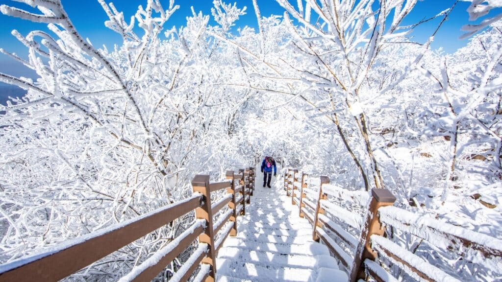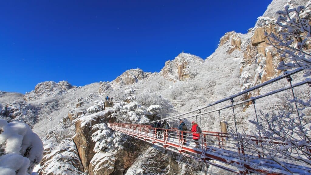 설산 위를 걷는 듯한 이 코스는 스릴과 성취감을 동시에 안겨준다. 추운 겨울에도 정상까지 오르는 이들이 꾸준히 이어지는 이유는 올라간 만큼의 풍경이 반드시 기다리고 있기 때문이다.