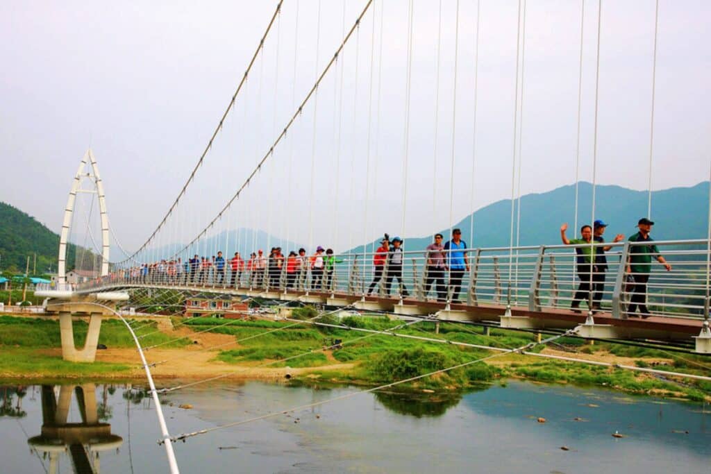 산속 등산로보다 덜 알려졌지만, 그만큼 한적하게 걸을 수 있는 길도 있다. 강 위를 가로지르며 흔들리는 이 다리는 걷는 이에게 단순한 통로가 아니라 움직이는 전망대를 제공한다.