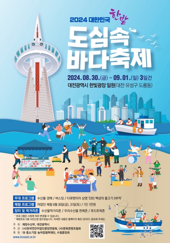 오는 30일부터 9월 1일까지 사흘간 대전 유성구 대덕대로 480에 위치한 ‘엑스포과학공원’ 한빛광장 일원에서 ‘2024년 대한민국 한밭 도심 속 바다축제’가 열린다.