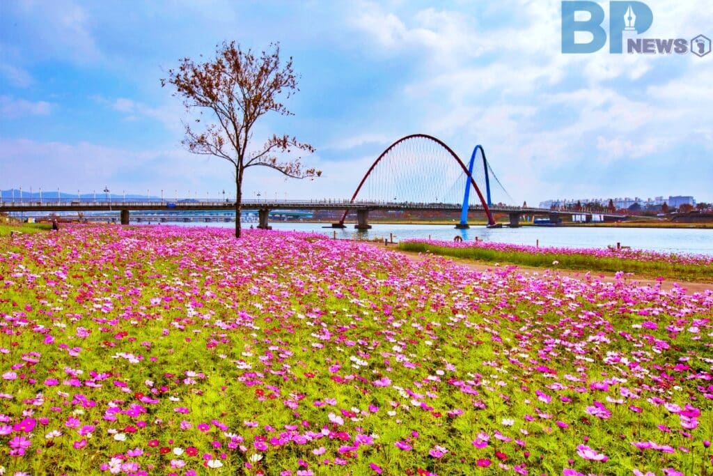분홍빛 코스모스 명소로 유명한 대전 엑스포과학공원 일원에서 대전 최초의 바다축제가 열려 소소한 화제가 되고 있다.