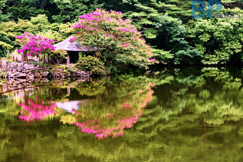 특히 여름에는 분홍빛 배롱나무로 유명하고 가을이 되면 단풍의 붉은색이 공간을 덮는다. 그 사이 계곡 옆 정자에서는 고즈넉한 풍경을 그대로 마주할 수 있다.