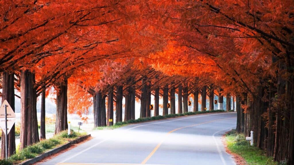단풍을 따라 가을 여행을 준비하고 있다면 지금부터 체크해 둘 만한 명소가 있다. 이곳은 울긋불긋한 단풍보다 더 깊은 인상을 주는 직선형 가로수길이다.