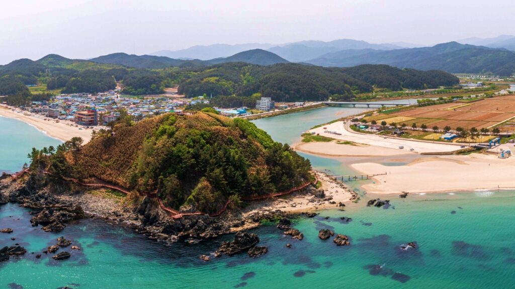 『해동여지도』와 『대동여지도』에도 기록된 이 지역은 원래 섬이었다가 모래 퇴적에 의해 육지와 연결된 육계도로, 지형적 독특함과 역사적 가치까지 함께 지닌 명소다.