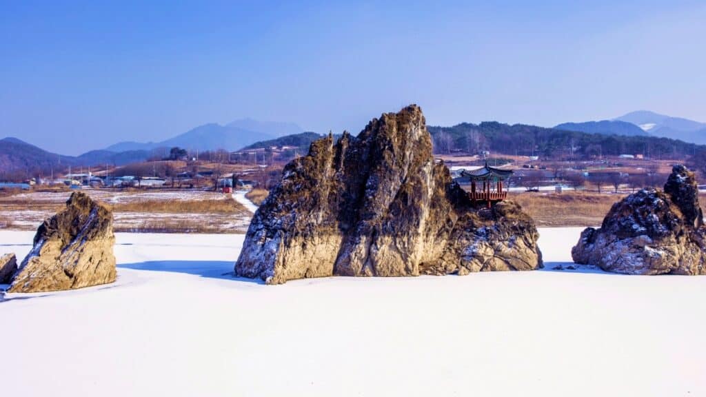 고즈넉한 멋이 흐르는 설경명소 도담삼봉으로 떠나보자.