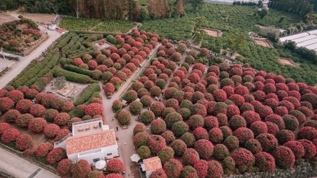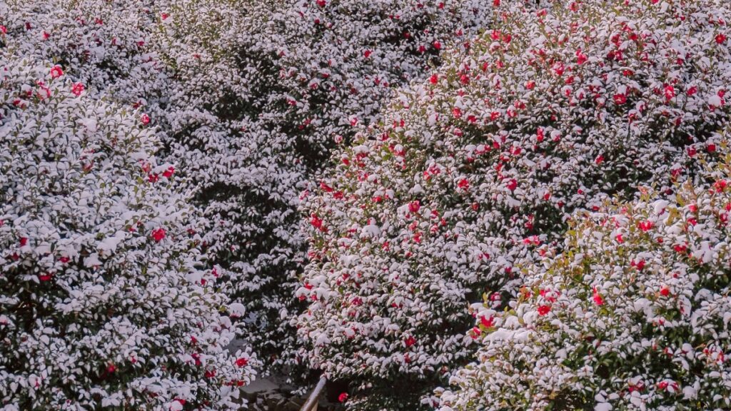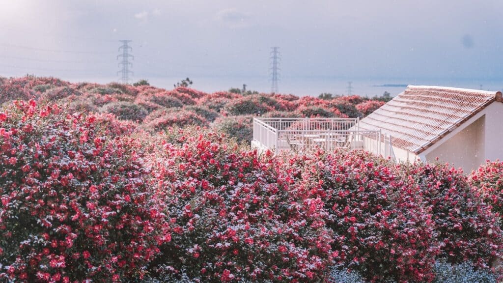 붉은 꽃 대신 이국적인 풍경과 고요한 정원이 여행자들의 발길을 붙잡는다. 하얀 유럽풍 건물과 둥글게 다듬어진 동백나무들이 어우러져 사진 속 한 장면처럼 펼쳐지는 이곳은 겨울에도 쉼을 찾아 떠나는 이들에게 충분한 위안을 선사한다.