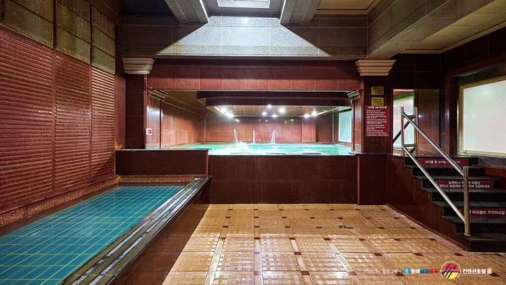 해수온천수를 그대로 활용한 수영장은 피부에 자극이 적고 따뜻한 수온 덕분에 겨울철에도 무리 없이 즐길 수 있다.