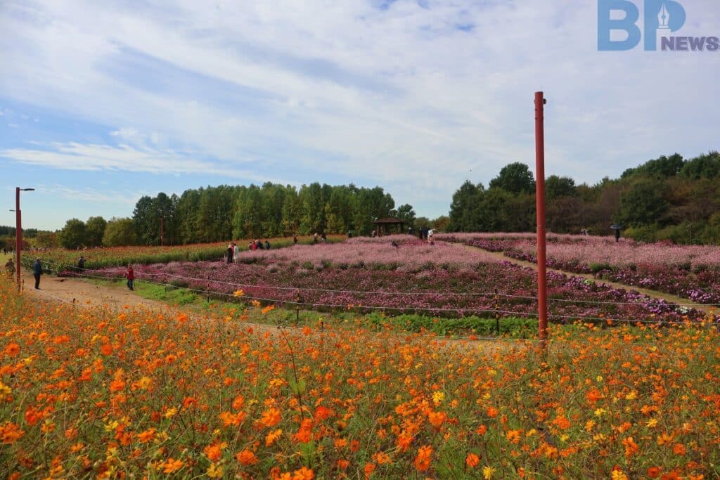 축제의 시작점에 들어서면, 가장 먼저 국화의 향기가 코끝을 스친다. 노란색, 보라색, 하얀색, 분홍색으로 물든 국화들이 정갈하게 피어 있고, 그 사이사이에는 코스모스와 황화코스모스가 가을의 빛을 더한다.