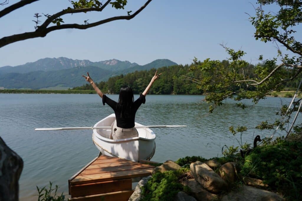무엇보다 이곳이 특별한 이유는 저수지와 정원이 맞닿아 경계가 사라진 듯한 풍경 덕분이다. 멀리 흑석산까지 한눈에 들어오는 탁 트인 뷰는 이곳을 찾는 이들의 발길을 멈추게 한다.