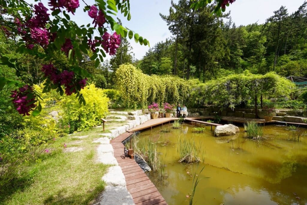 1만여㎡ 규모의 정원 곳곳에는 계절마다 다른 색을 띠는 300여 종의 수목과 초화류가 식재돼 있다. 걷는 내내 꽃과 나무가 시선을 사로잡고, 산책로 끝마다 마주치는 쉼터는 그 자체로도 힐링이다.