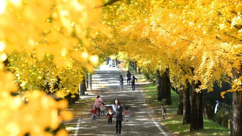 길지 않은 거리, 소박한 시골 마을이지만 노란 은행잎이 덮이면 길 전체가 황금색 카펫으로 변한다. 화려하지 않지만 묘하게 끌리는 이 풍경은 SNS보다 눈으로 직접 봤을 때 더 깊게 남는다.