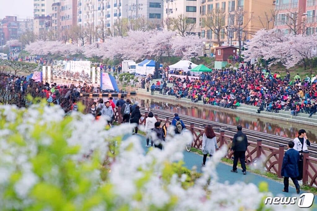 강변을 따라 이어지는 벚꽃길, 그곳에서는 꽃뿐만 아니라 다채로운 즐길 거리가 펼쳐진다. 길거리 곳곳에는 특별한 테마 공간이 조성되고, 저녁이 되면 강 위에 떠 있는 수상무대에서 음악이 울려 퍼진다.