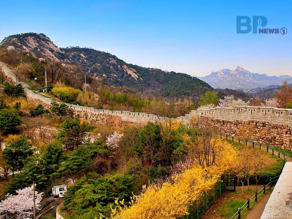 개나리 군락지로 주목받는 또 다른 서울의 명산은 바로 인왕산이다. 종로구와 서대문구의 경계에 있는 인왕산은 경치가 아름다워 겸재 정선의 ‘인왕제색도’로도 널리 알려진 산이다.