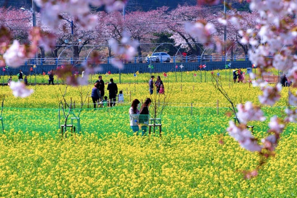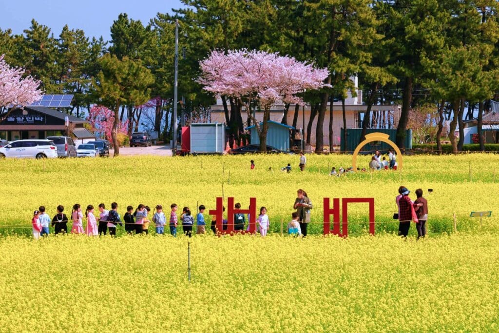노란 유채꽃과 새파란 동해바다가 만들어내는 강렬한 색 대비는 보는 이들의 감탄을 자아내며 잊지 못할 추억을 선사한다.