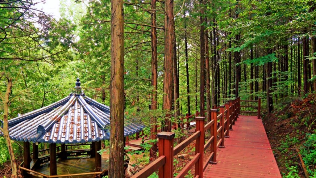 편백숲을 따라 걷고, 정자에 앉아 시간을 보내다 보면 자연스레 심박수가 안정되고, 긴장이 풀리는 것을 체감하게 된다.