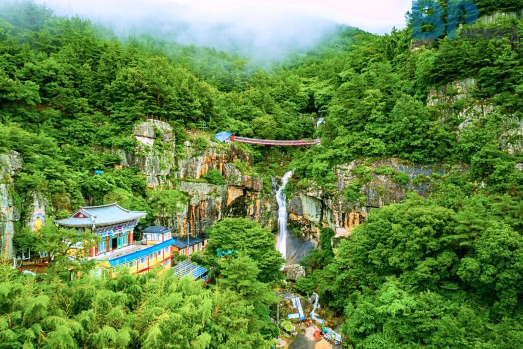 사찰 뒤편 제3폭포 상단에는 높이 50미터, 길이 35미터 규모의 출렁다리가 설치돼 있다. 방문객은 산길을 따라 도보로 다리까지 올라야 하며 다리 위에서는 발아래로 폭포수가 흐른다.