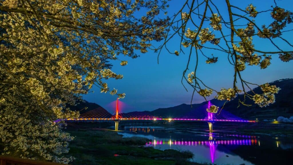 특히 강을 따라 이어지는 벚꽃길은 시야가 탁 트인 풍경과 함께 계절감을 더욱 선명하게 전달한다.