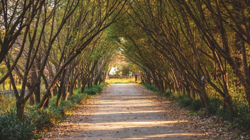 입장 후 가장 먼저 마주치는 공간은 메타세쿼이아 숲길이다. 정원의 전체 구조를 이 숲길이 관통하고 있으며 이를 따라 주요 테마 정원들이 배열되어 있다.