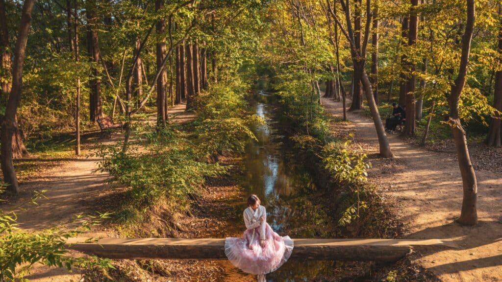 울창한 나무들 사이, 바닥을 따라 맑은 개울이 흐르고 외나무다리에 발을 디디면 또렷이 비치는 숲의 그림자. 이곳이 본래 산림 연구기관이었다는 사실은 다소 의외다.