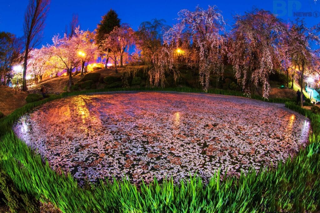그 빛이 연못 위에 반사되어 더욱 환상적인 분위기를 만들어내며 역사 속 풍경을 현실 속에서 마주하는 듯한 경험을 선사한다.