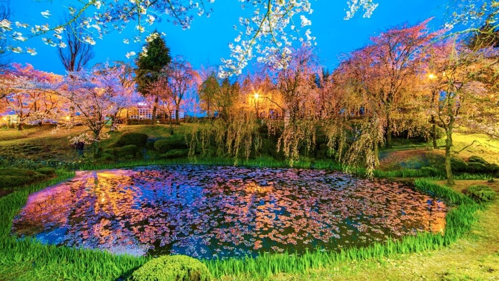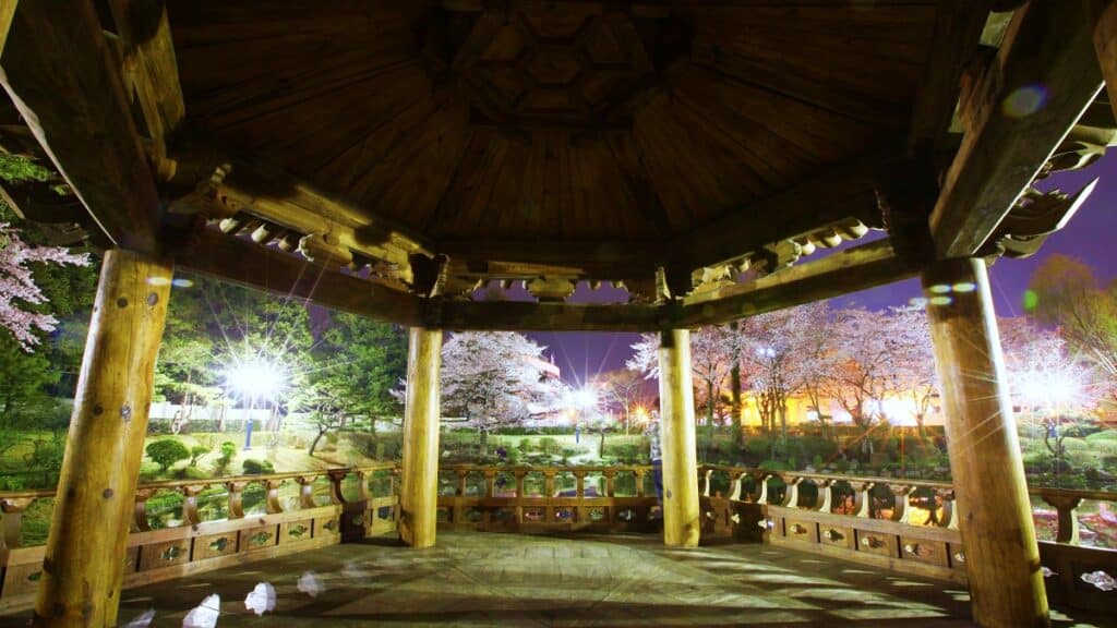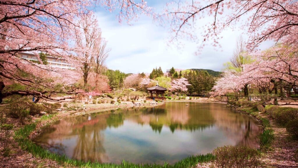 이런 가운데 고즈넉한 연못과 정자가 어우러진 풍경 속에서 벚꽃을 감상할 수 있는 장소가 있다.