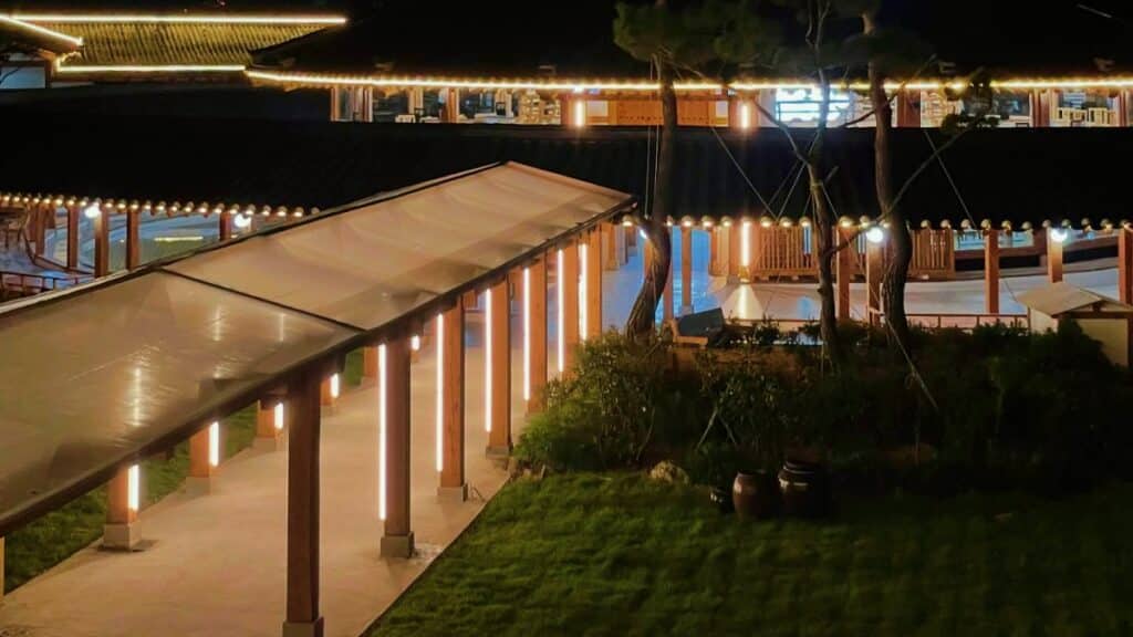 가장 큰 특징은 원형 한옥 정원동의 중정에 설치된 수로 시스템이다. 한옥의 기와지붕을 따라 사방에서 떨어지는 물줄기가 마당을 흐르며 연중 내내 일정한 소리를 낸다. 이는 단순한 조경 효과를 넘어 ‘치유’라는 공간의 메시지를 전달하는 핵심 요소다.