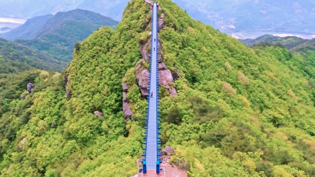 그 위에 매달린 듯 놓인 구름다리 하나가 있다. 이 다리는 기둥 하나 없이 공중에 떠 있는 구조로, 단순한 출렁다리가 아니다.