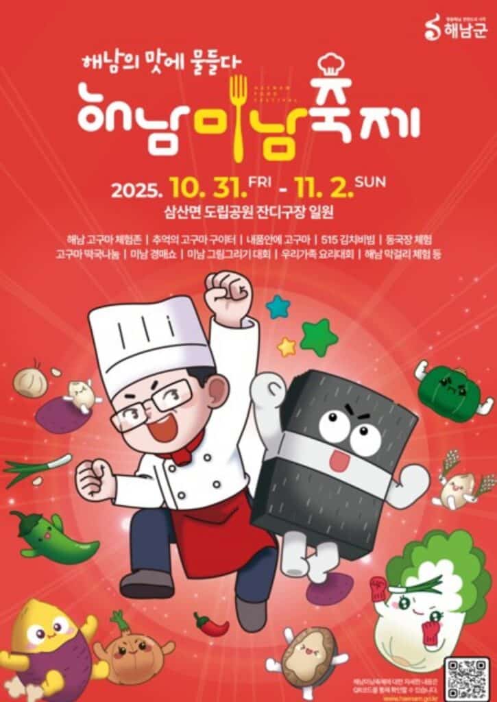 올해 축제는 ‘해남의 맛에 물들다’를 주제로 열린다. 해남군 14개 읍면 주민이 자발적으로 참여해 각 지역을 대표하는 농수산물과 향토 음식을 선보이며, 이를 주제로 한 ‘특산물 뽐내기 퍼레이드’도 진행된다.