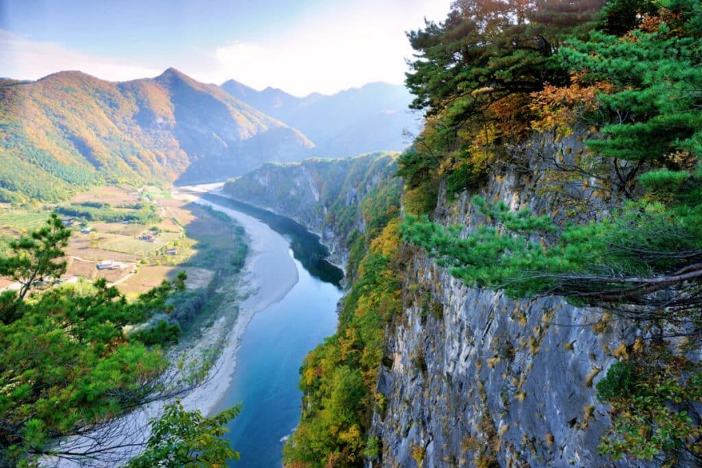 일명 ‘스카이워크’라 불리는 이 구간은 아래로는 동강의 풍경이, 위로는 기암절벽이 펼쳐져 있어 발을 내딛는 순간 이색적인 감각이 극대화된다.