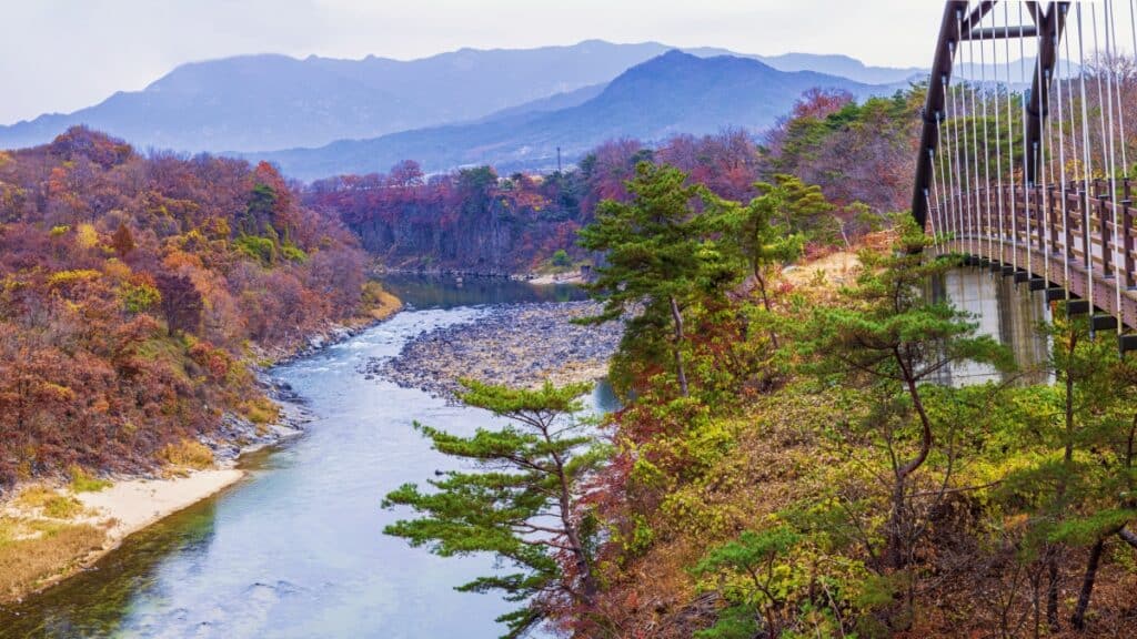 특히 다리 아래 흐르는 한탄강과 양쪽으로 펼쳐지는 주상절리는 유네스코 세계지질공원으로 지정된 이 지역의 자연적 특징을 고스란히 드러낸다.