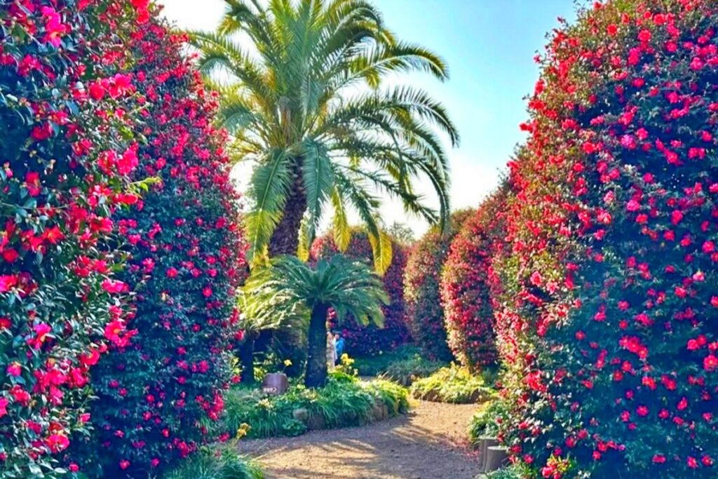 17만 ㎡(약 5만 평)의 넓은 부지에 전 세계 500여 종의 동백나무가 심겨 있으며, 이곳에서는 동백꽃의 다양한 매력을 한꺼번에 감상할 수 있다.