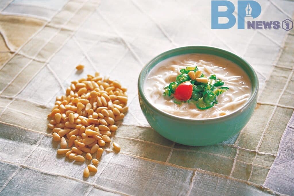 그중에서도 잣국수는 메밀, 밀국수를 시원한 잣 국물에 말아먹는 음식이다. 콩국수와 비슷한 느낌의 요리이나, 더 고소하고 맑은 맛이 난다.