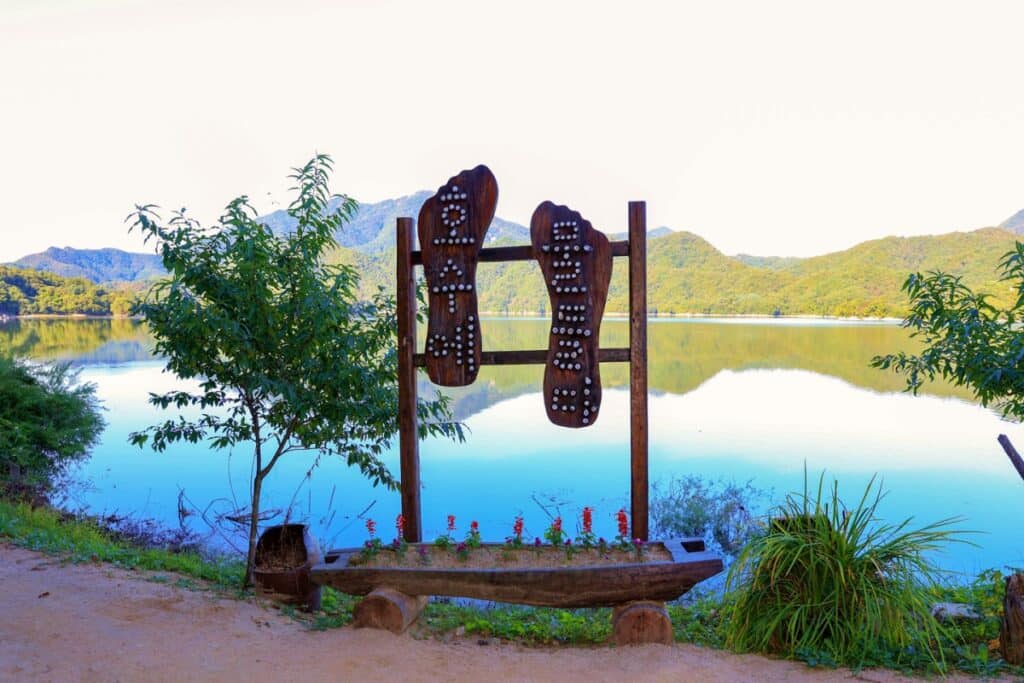 망향의 동산에서 출발하는 A코스는 곳곳에 설치된 조형물과 세 곳의 전망대에서 호수에 비친 물그림자를 감상할 수 있어 사진 명소로 각광받는다.