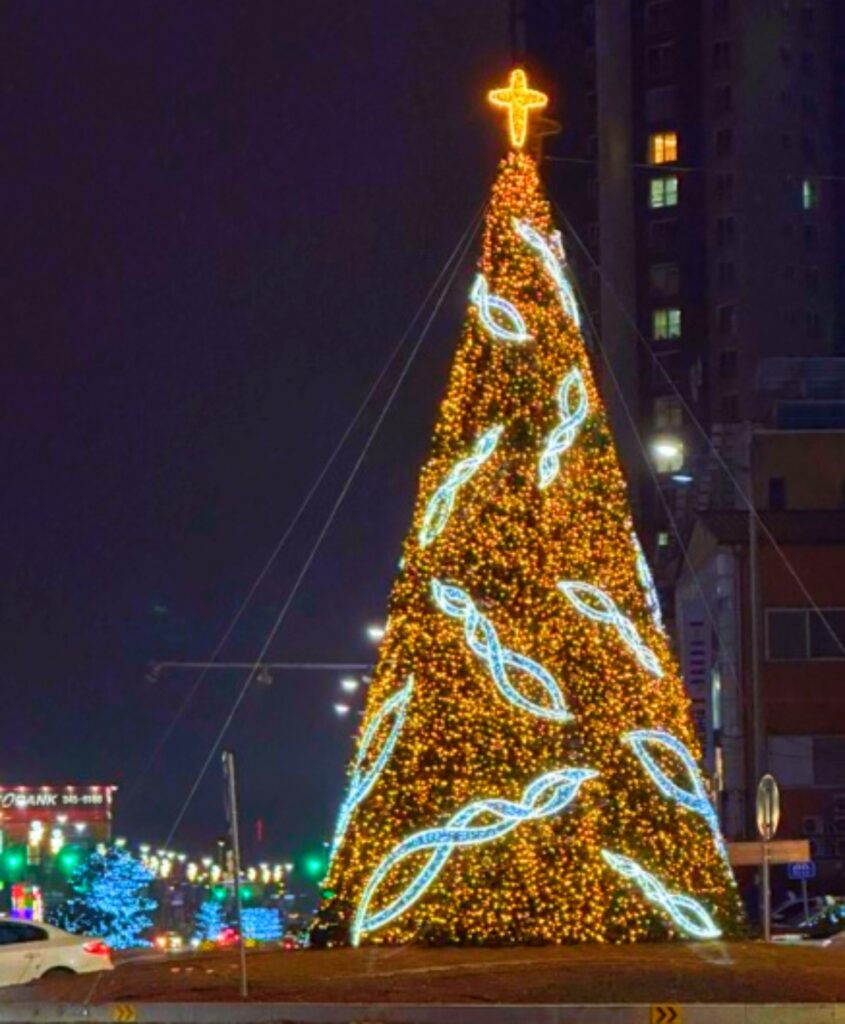 강원특별자치도 횡성군 횡성읍 횡성오거리에 위치한 회전교차로 일대는 지금 겨울밤의 주인공이 되었다. 대형 크리스마스트리를 중심으로 펼쳐진 경관조명은 내년 3월 초까지 지역을 은은하게 비춘다.