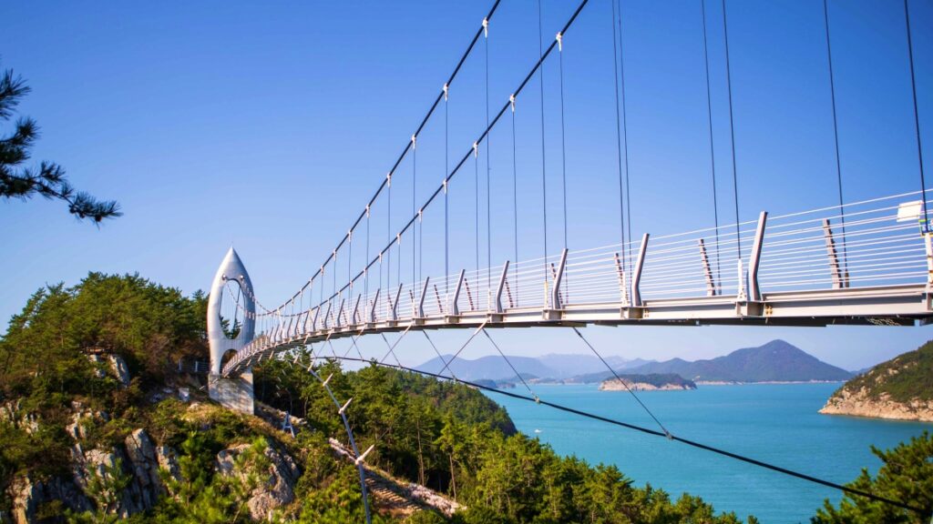 그런 풍경 속에 매달린 듯한 다리는 공포감보다는 경이로움을 먼저 자아낸다. 날씨가 맑은 날엔 먼바다까지 시야가 트이고, 겨울철에는 더욱 투명한 공기 덕에 다도해의 윤곽이 또렷하게 드러난다.