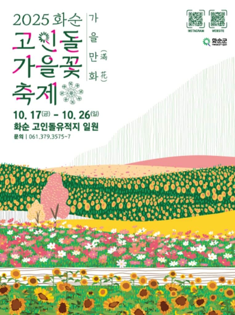 전라남도 화순군 도곡면 고인돌1로 180에 위치한 고인돌 유적지에서는 오는 10월 17일부터 26일까지 열흘간 ‘2025 화순 고인돌 가을꽃 축제’가 개최된다.